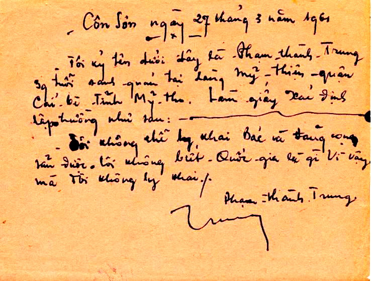 […] Xem thêm: Bút tích chống ly khai của các chiến sỹ tù chính trị Côn Đảo […]