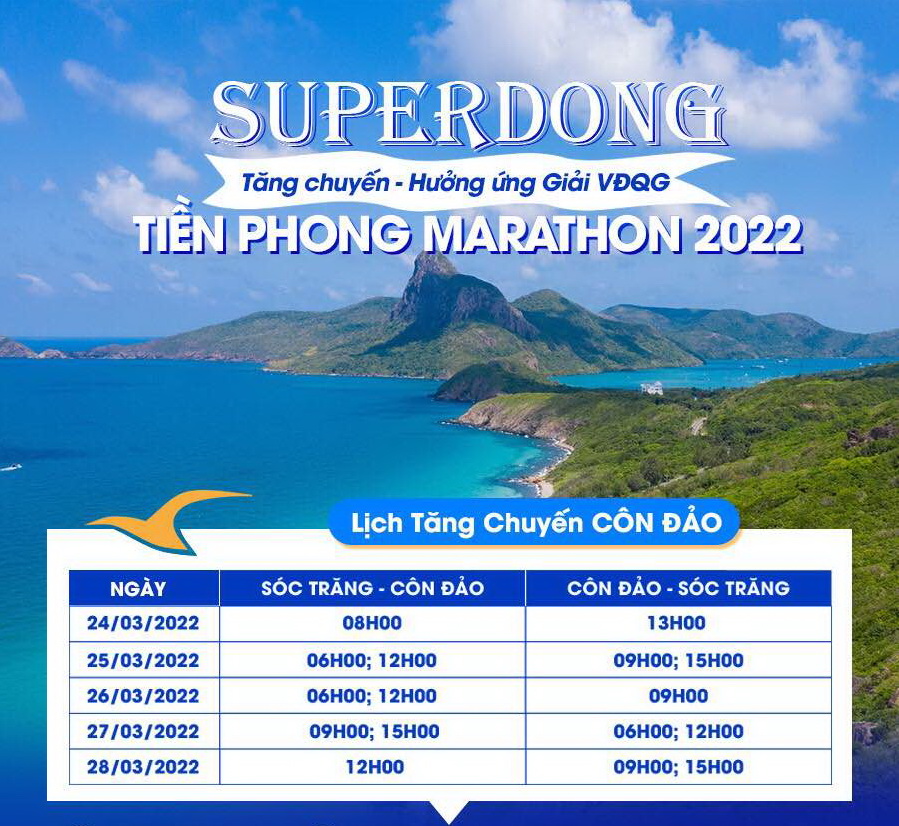Superdong khởi hành từ Trần Đề Sóc Trăng sẽ tăng chuyến Côn Đảo đồng hành cùng Giải vô địch quốc gia Marathon báo Tiền Phong 2022