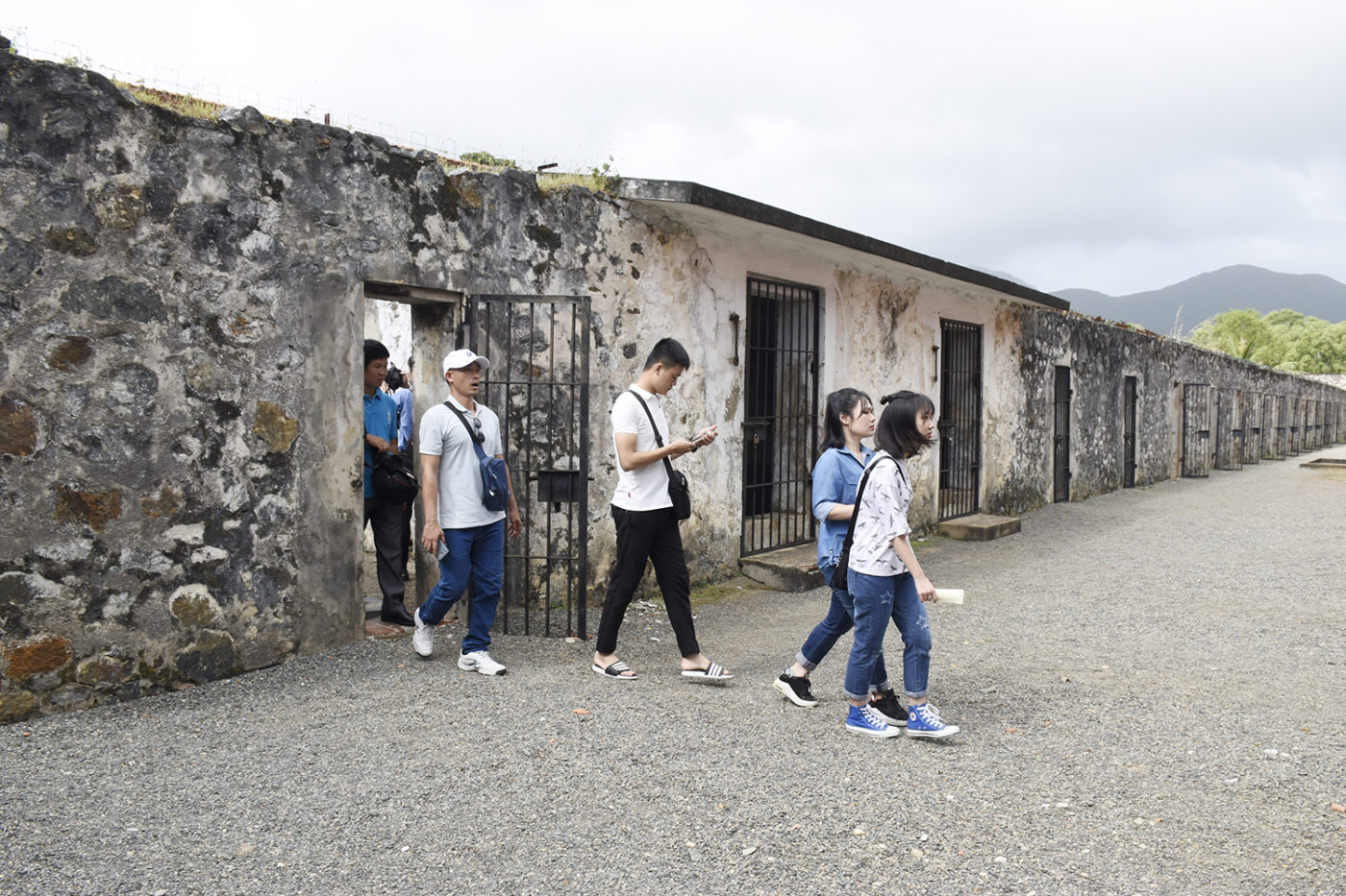 Sau khi tham quan trại Phú Hải, chúng tôi di chuyển tiếp điểm tham quan thứ 2 trong tour tham quan di tích nhà tù Côn Đảo, đó là trại Phú Tường. Trại nằm ngay ngã ba Tôn Đức Thắng-Nguyễn Chí Thanh-Nguyễn Huệ. Sau thủ tục kiểm soát vé của nhân viên Trung tâm Bảo tồn Di tích Quốc gia Côn Đảo, chúng tôi cùng hòa vào một đoàn khách đến từ Hà Nội để nghe thuyết minh và tìm hiểu về trại Phú Tường.