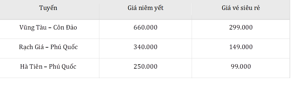 - Riêng tuyến Vũng Tàu – Côn Đảo, chỉ áp dụng vé ngày thường.
