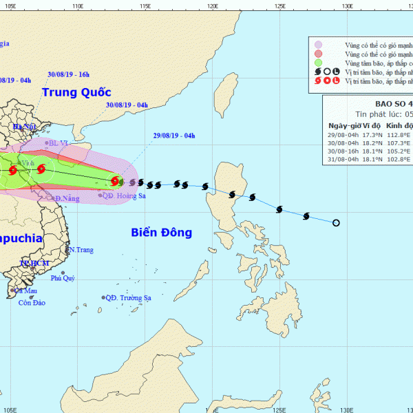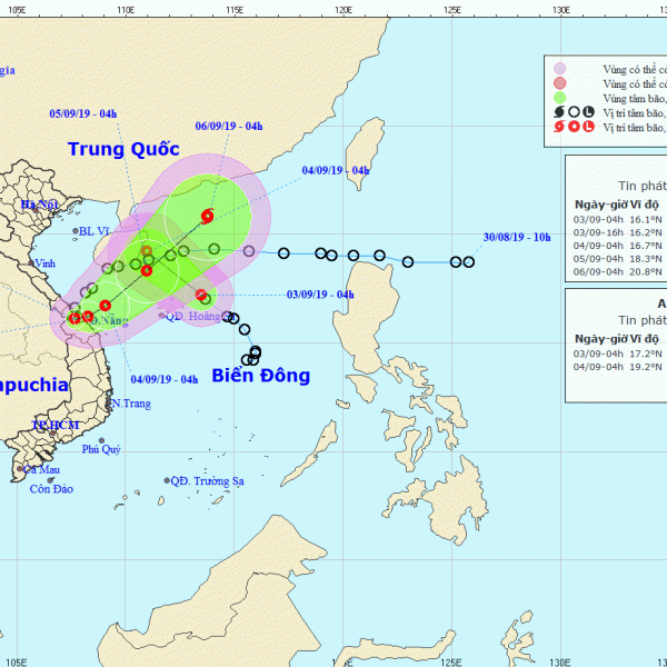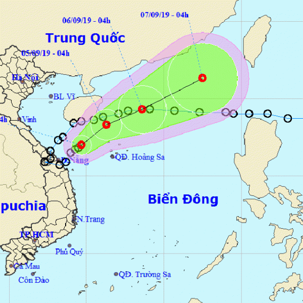 Hồi 04 giờ ngày 04/9, vị trí tâm áp thấp nhiệt đới ở khoảng 17,0 độ Vĩ Bắc; 109,7 độ Kinh Đông, cách đất liền các tỉnh Quảng Trị-Quảng Ngãi khoảng 180km về phía Đông Đông Bắc. Sức gió mạnh nhất vùng gần tâm áp thấp nhiệt đới mạnh cấp 6 (40-50km/giờ), giật cấp 8. Bán kính gió mạnh cấp 6, giật cấp 8 khoảng 60km tính từ tâm áp thấp nhiệt đới.