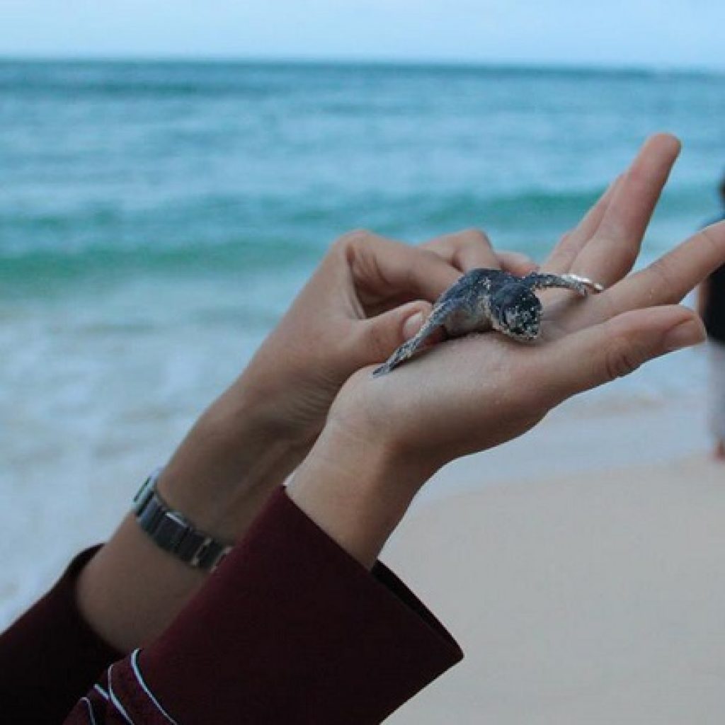 Và cũng là lần đầu tiên và may mắn được thả rùa về biển