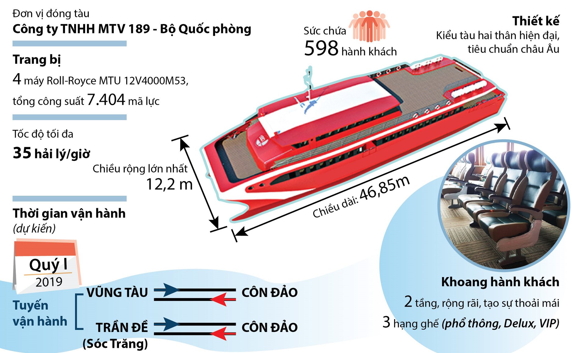 Với tốc độ này, tàu cho phép rút ngắn hải trình từ Vũng Tàu tới Côn Đảo (và ngược lại) xuống chỉ còn 3 giờ 50 phút đồng hồ, từ Trần Đề (Sóc Trăng) đi Côn Đảo chỉ 1 giờ 45 phút.