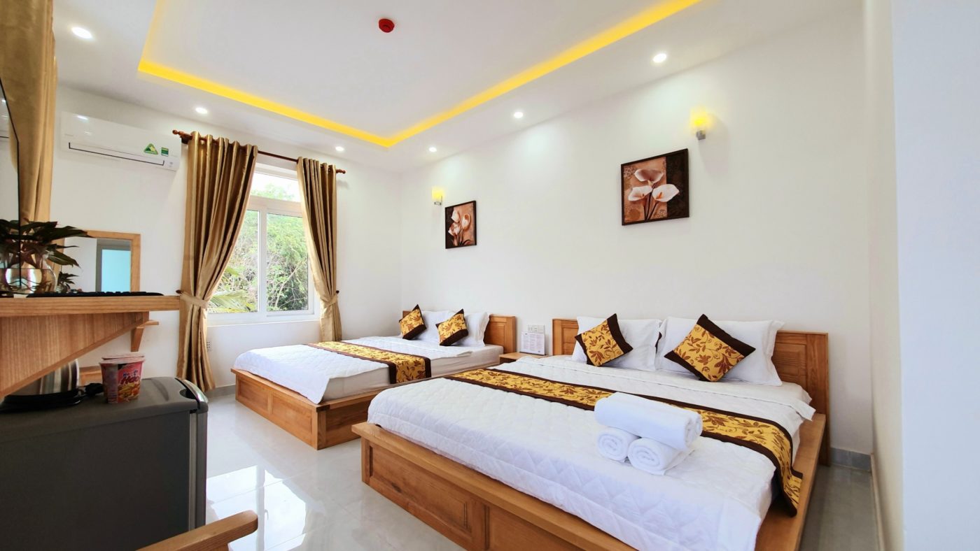 Phòng nghỉ của khách sạn được trang bị đầy đủ tiện nghi bao gồm: tủ để quần áo, TV màn hình phẳng, phòng tắm riêng và tủ lạnh,… nhằm mang lại trải nghiệm thoải mái và hợp lý nhất cho quý khách. Tất cả các phòng đều có cửa sổ, trong đó có những phòng với view hướng biển và công viên vô cùng thoáng mát và sạch sẽ
