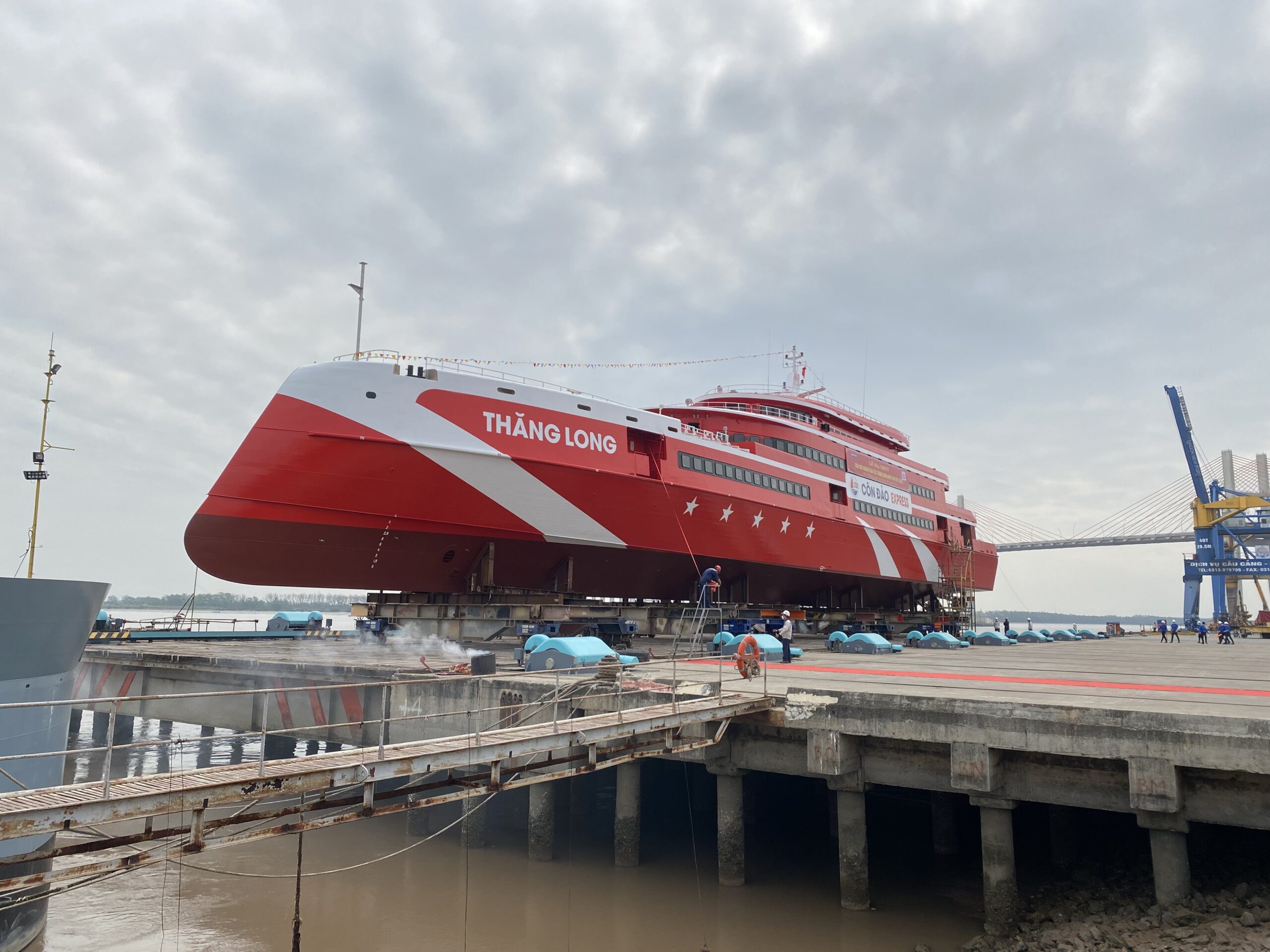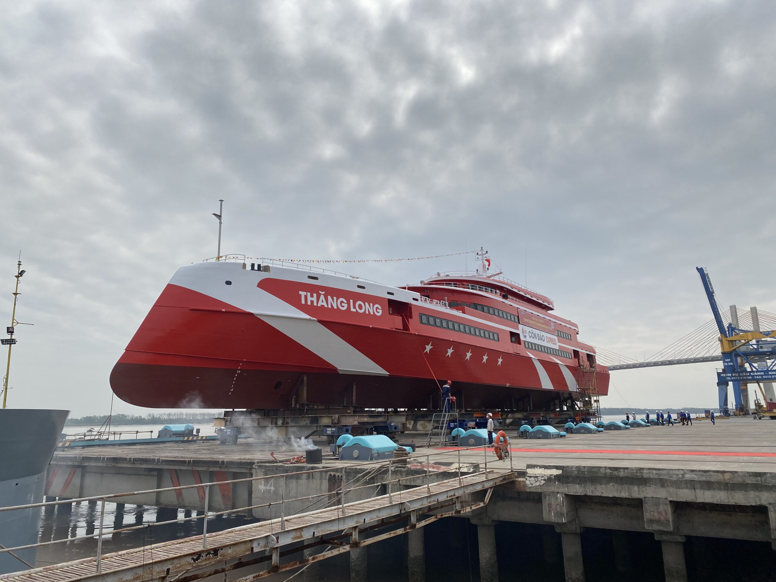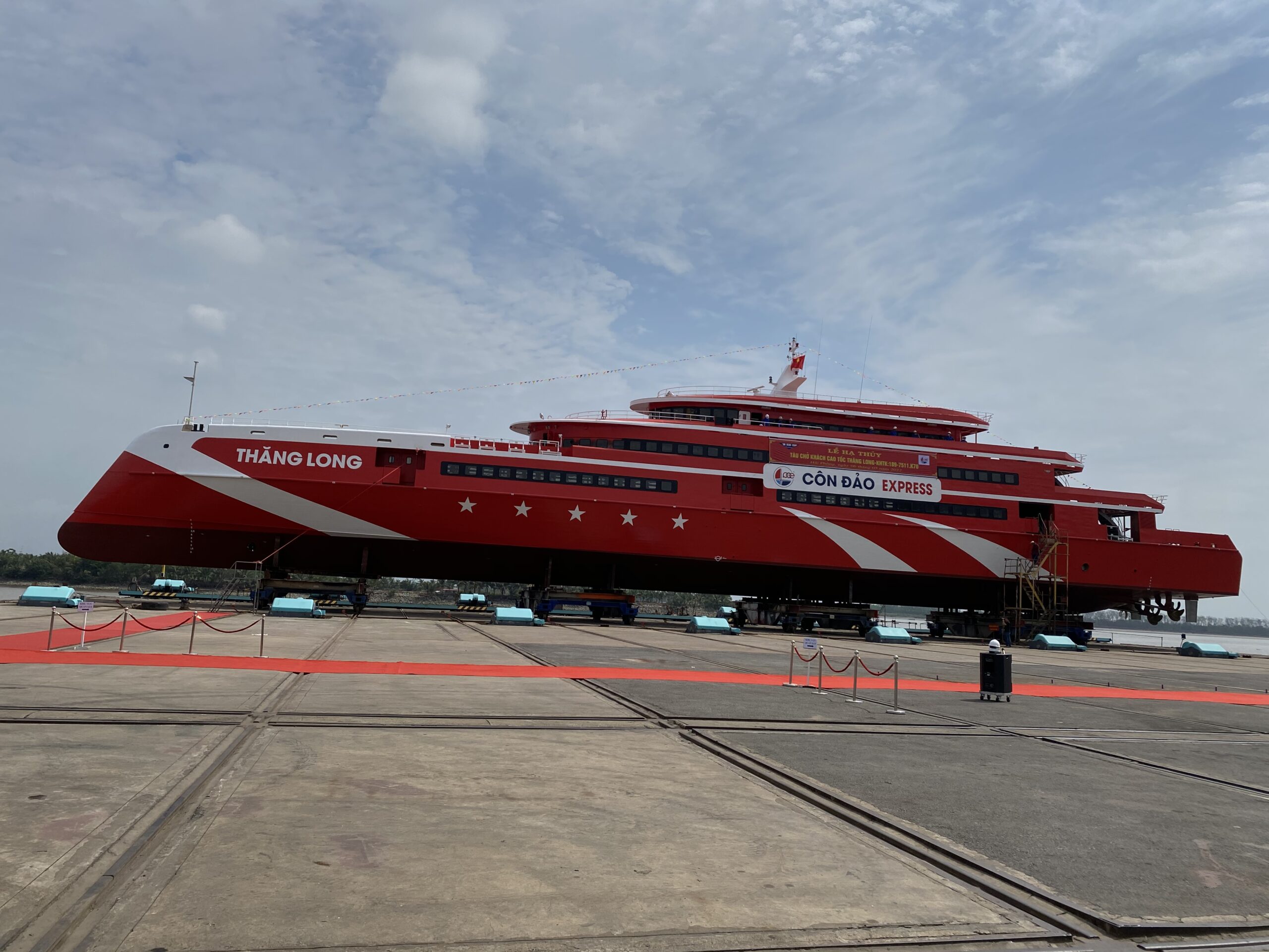 Ngày 6/5, tại Hải Phòng, Công ty cổ phần Tàu cao tốc Phú Quốc phối hợp cùng Công ty Trách nhiệm hữu hạn Một thành viên 189 thuộc Tổng cục Công nghiệp Quốc phòng tổ chức Lễ hạ thủy siêu tàu khách cao tốc Thăng Long – tàu cao tốc một thân lớn nhất Việt Nam, để chuẩn bị đưa vào vận hành, phục vụ hành khách đi lại và du lịch trên tuyến Vũng Tàu – Côn Đảo, dự kiến trong tháng 6/2022.