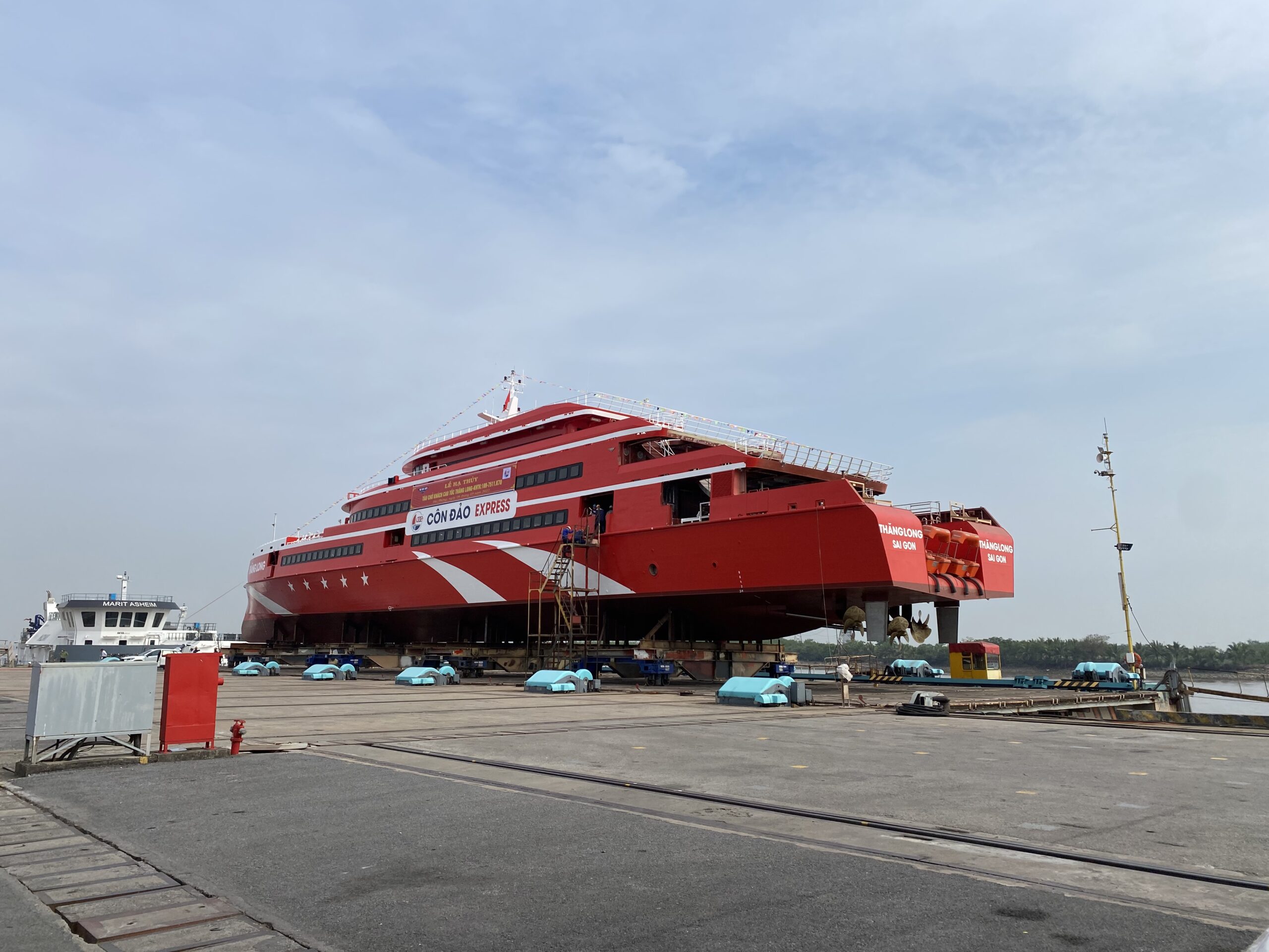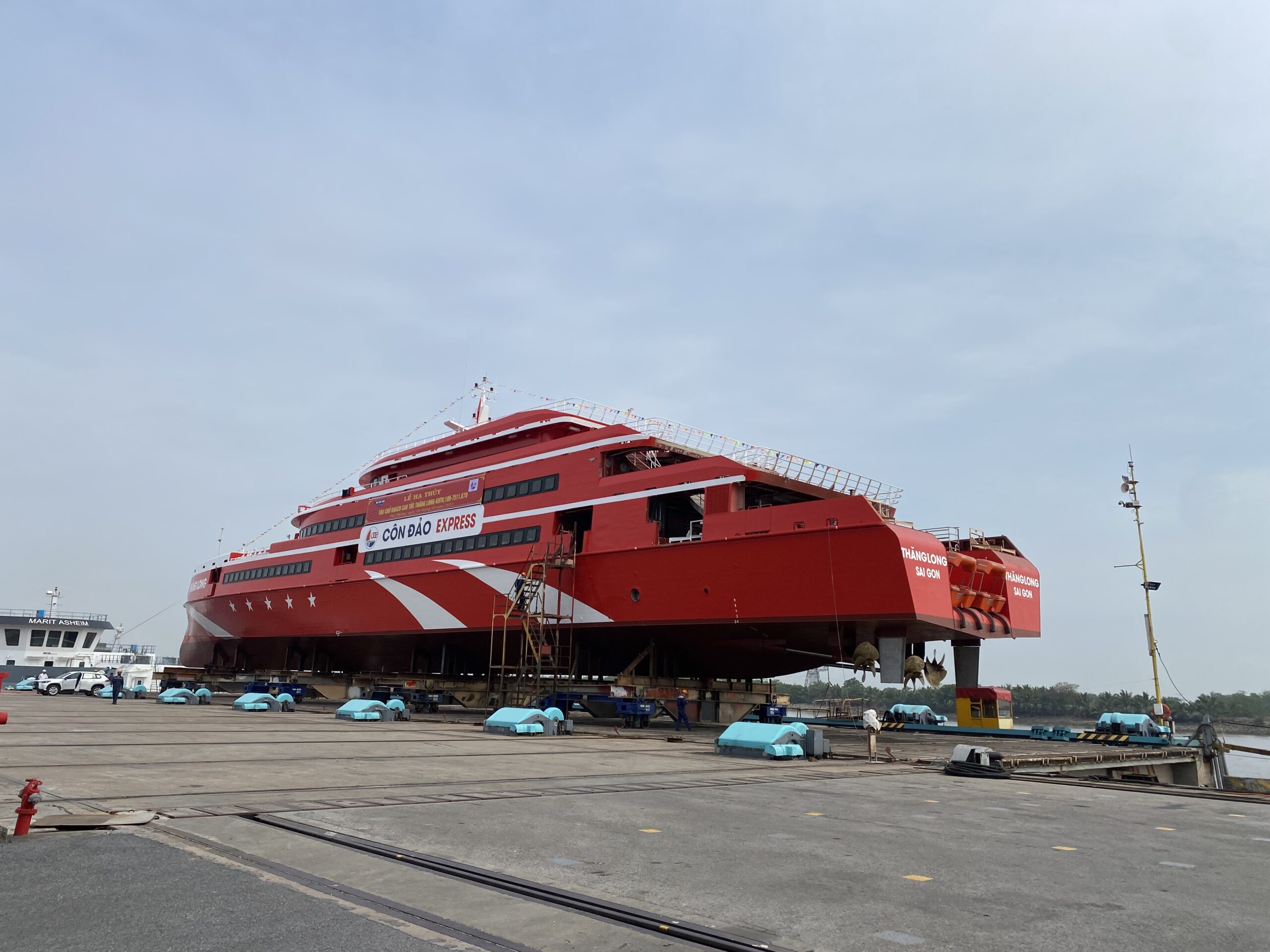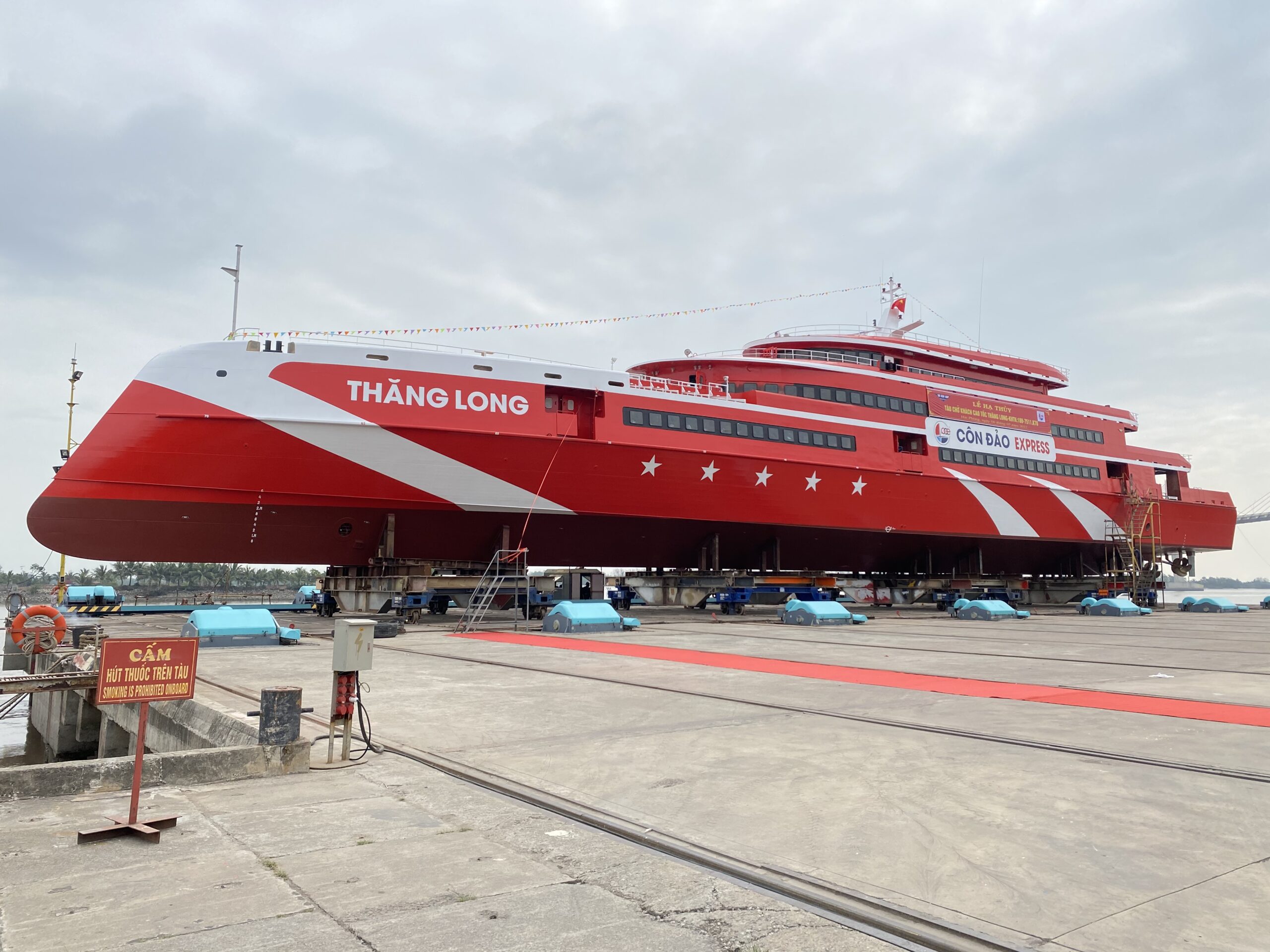 Ngày 6/5, tại Hải Phòng, Công ty cổ phần Tàu cao tốc Phú Quốc phối hợp cùng Công ty Trách nhiệm hữu hạn Một thành viên 189 thuộc Tổng cục Công nghiệp Quốc phòng tổ chức Lễ hạ thủy siêu tàu khách cao tốc Thăng Long – tàu cao tốc một thân lớn nhất Việt Nam, để chuẩn bị đưa vào vận hành, phục vụ hành khách đi lại và du lịch trên tuyến Vũng Tàu – Côn Đảo, dự kiến trong tháng 6/2022.