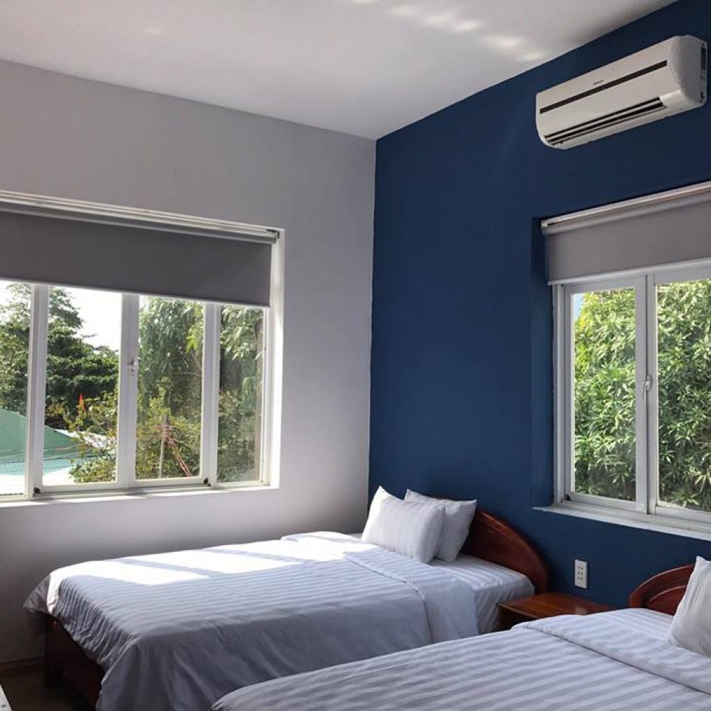Khách sạn theo đúng tiêu chí nhỏ xinh với tone màu xanh, trắng làm chủ đạo, vài chiếc ghế nho nhỏ đặt phía trước khách sạn, sân thượng hay ban công giúp bạn vừa ngồi ngắm cảnh thư giãn, vừa có thể làm quen được nhiều người bạn mới.