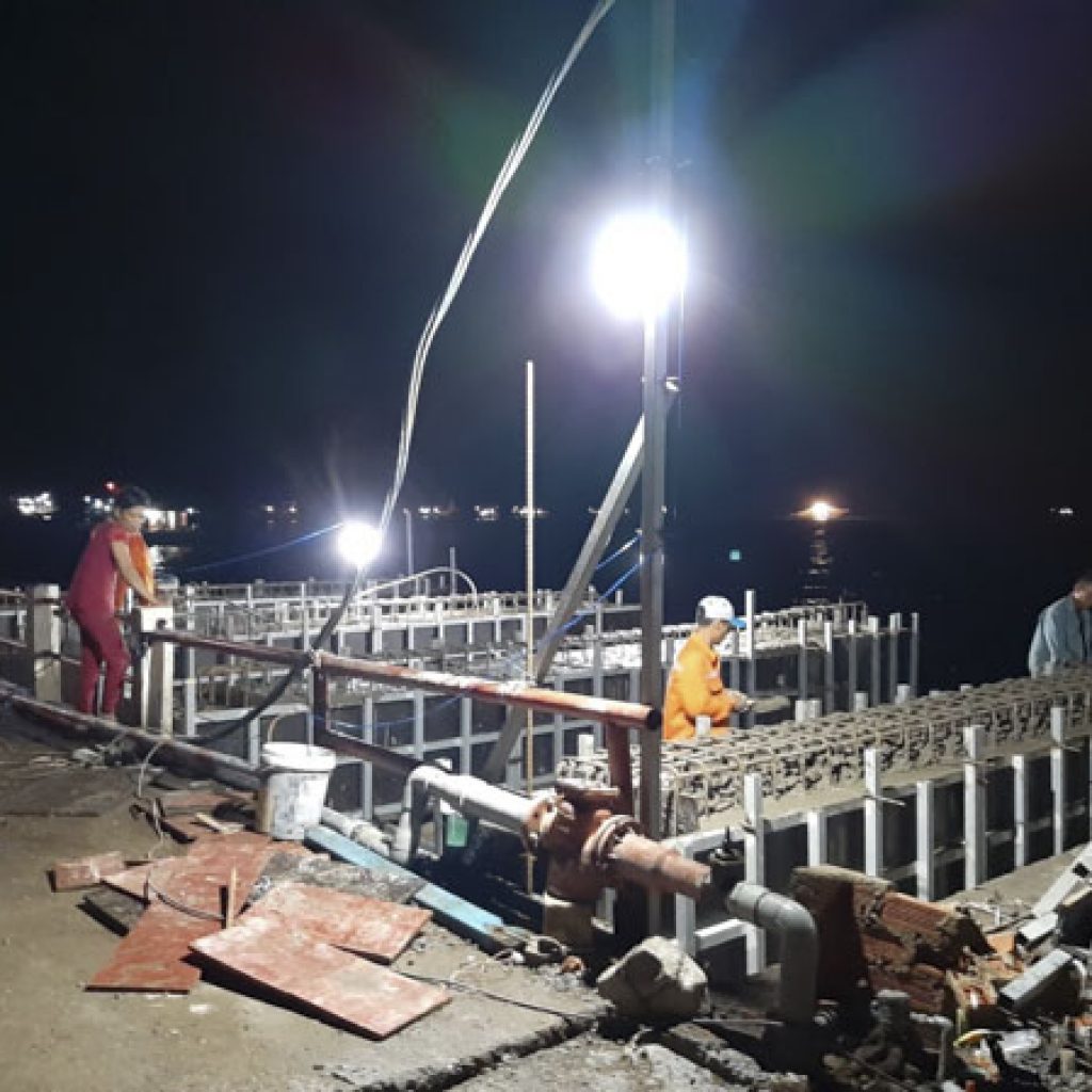 Ông Nguyễn Văn Tứ, Phó Giám đốc Ban QLDA chuyên ngành giao thông tỉnh cho biết, tổng mức đầu tư nâng cấp, mở rộng cảng Bến Đầm hơn 135 tỷ đồng, bao gồm các hạng mục: cải tạo cầu chính hiện hữu để tiếp nhận tàu trọng tải 3.000 tấn; nâng cấp và mở rộng cầu tàu cá với chiều dài bến hơn 119m, chiều rộng 18,52m; sửa chữa nâng cấp cầu dẫn với quy mô cầu dài 135m, rộng 15,52m… Hiện nay, tiến độ thực hiện đạt hơn 20% khối lượng công việc. Công trình được thi công trong vòng 3 năm, dự kiến hoàn thành vào cuối tháng 4-2021. Tuy nhiên, vấn đề đặt ra là huyện Côn Đảo chỉ có duy nhất cầu cảng Bến Đầm thực hiện nhiệm vụ dịch vụ cảng hàng hóa, nên trong khi sửa chữa, nâng cấp vẫn phải duy trì bến cảng để khai thác, bảo đảm nhu cầu neo, cập cảng, xếp dỡ hàng hóa của các loại phương tiện. “Vì vậy, việc thi công phải có giải pháp phù hợp như đóng cọc bổ sung, thi công dầm ngang, trụ tựa, mối nối mặt cầu thì được thực hiện tại cảng. Riêng kết cấu bản mặt cầu được thi công, đúc sẵn trong đất liền sau đó vận chuyển ra lắp ghép nhằm bảo đảm chất lượng bê tông và tiến độ thực hiện dự án”, ông Nguyễn Văn Tứ cho hay.