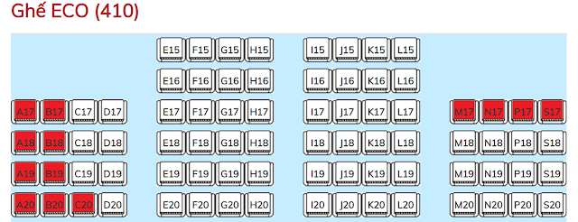 Côn Đảo Express có 598 ghế bao gồm: 30 ghế VIP, 158 ghế tầng trên và 410 ghế Eco được phân bố như sau: