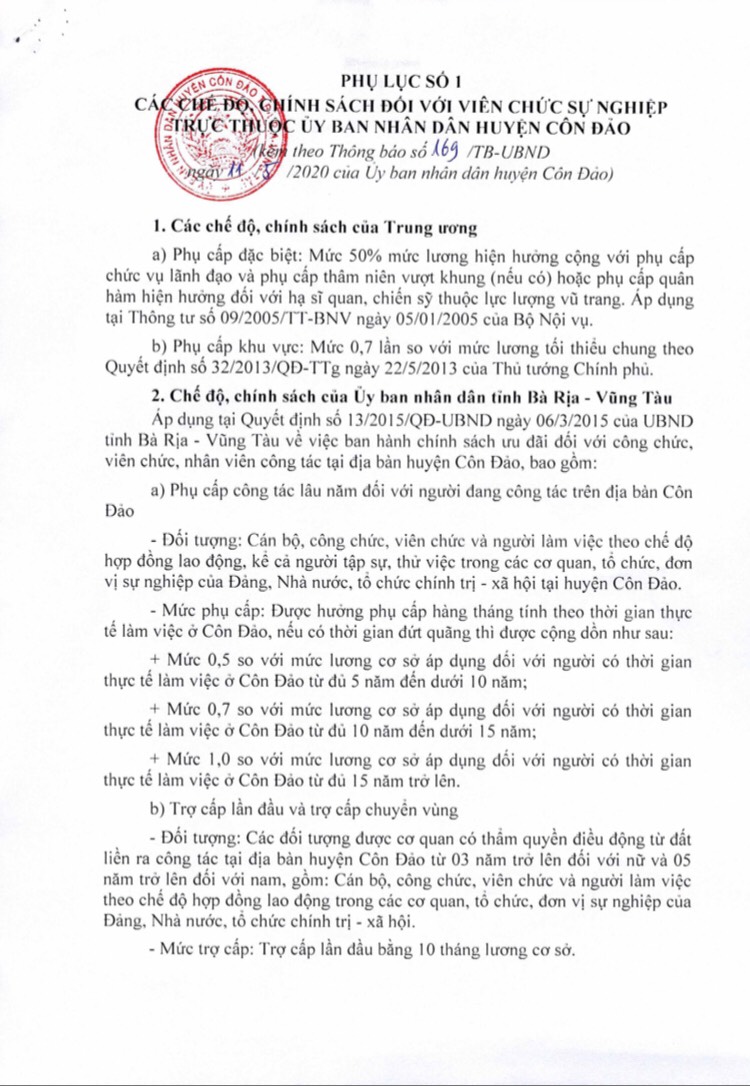 CHẾ ĐỘ CHÍNH SÁCH ĐỐI VỚI VIÊN CHỨC SỰ NGHIỆP TRỰC THUỘC UBND HUYỆN CÔN ĐẢO