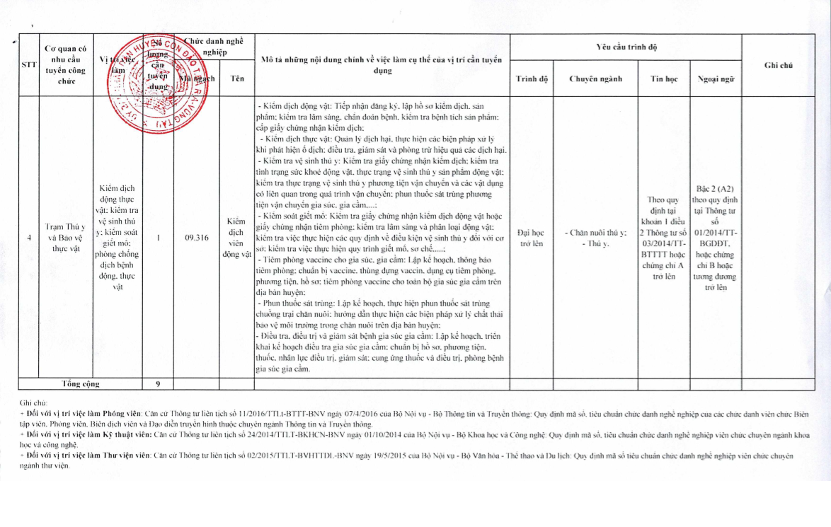 - Trạm Thú y và Bảo vệ thực vật: 01 chỉ tiêu.