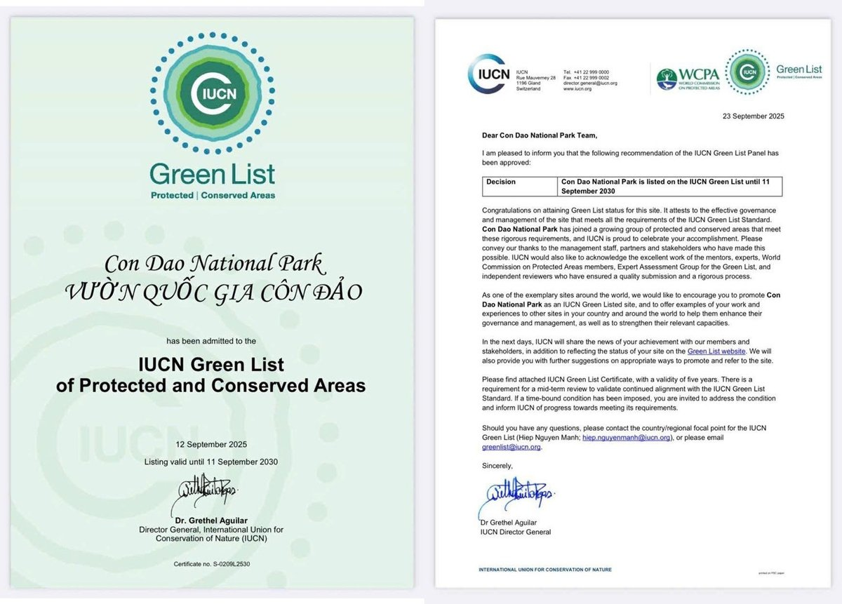 Đây là thành quả của một hành trình bền bỉ, khẳng định vị thế của Côn Đảo trong công tác quản lý và bảo tồn thiên nhiên. Theo IUCN, Danh lục xanh không chỉ là “chứng nhận danh dự” mà còn là một thước đo khách quan, dựa trên bộ tiêu chí quốc tế nghiêm ngặt về tính hiệu quả, minh bạch và công bằng trong quản lý các khu bảo tồn.